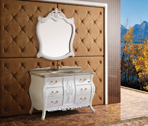 MFG-24實(shí)木仿古柜,采用泰國進(jìn)口橡木,配以水晶木紋白天然大理石臺面,以及圓弧形立體大理石臺下盆。純白色彩配以金色五金拉手,整體外觀(guān)凸現新一代田園風(fēng)格,產(chǎn)品游走于現代與復古之間,線(xiàn)條簡(jiǎn)約而不簡(jiǎn)單,品味低調而不失奢華。中間蘭花的雕刻修飾,經(jīng)由純實(shí)木手工打造,散發(fā)著(zhù)強烈的鄉村田園風(fēng)情和野趣,讓那種輕松、不雕琢的感官占據冗繁的心靈,享受徹底的純凈的世界。
